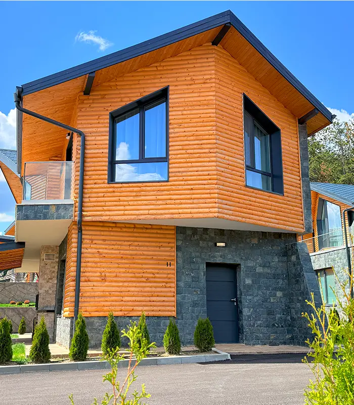 - Фасадни решения и вентилируеми фасади (с подходящи профили и термодървесина)