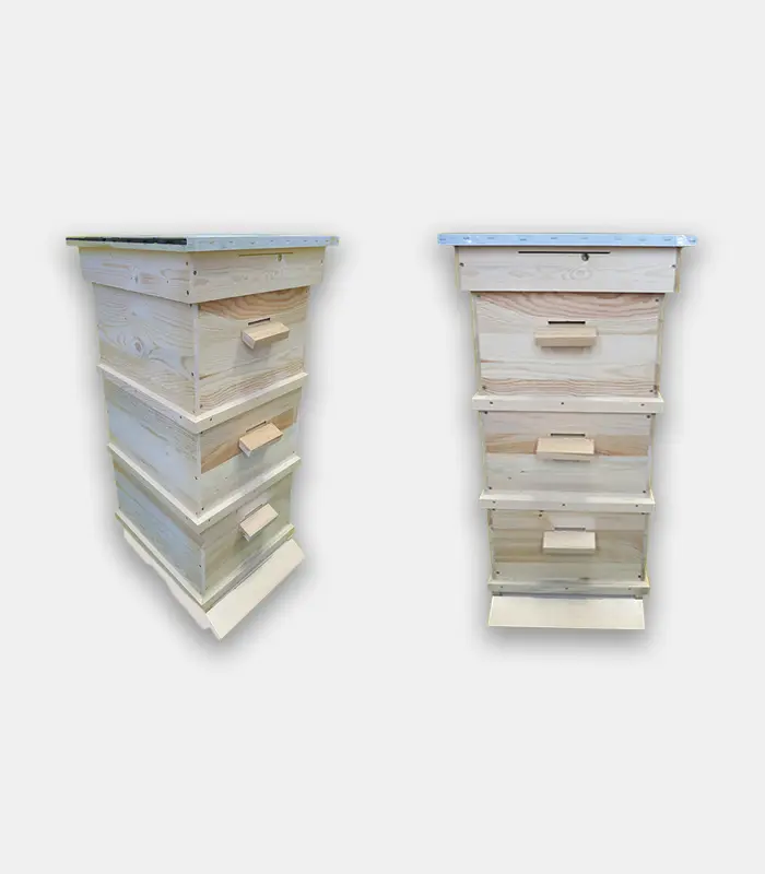 - Лангстрот-Рут (Многокорпусни) – 8 и 10 рамкови кошери, удобни за мащабно пчеларство и по-лесно управление на пчелните семейства.