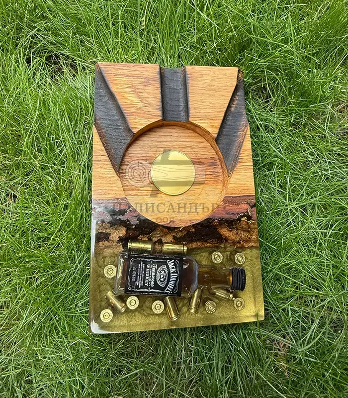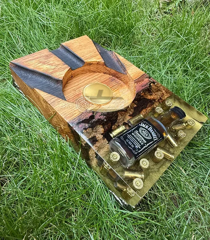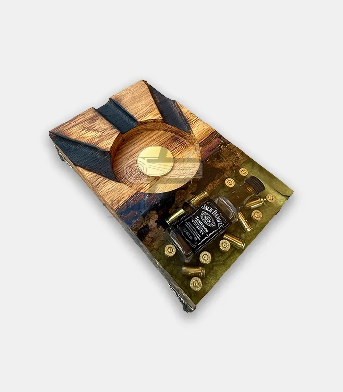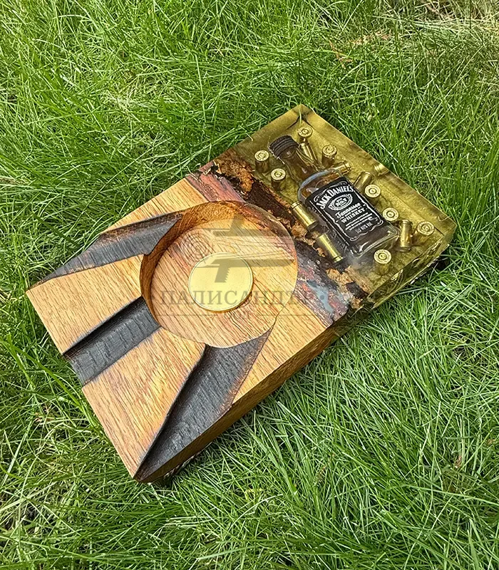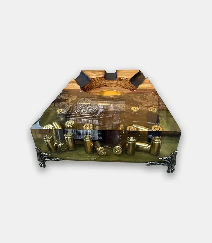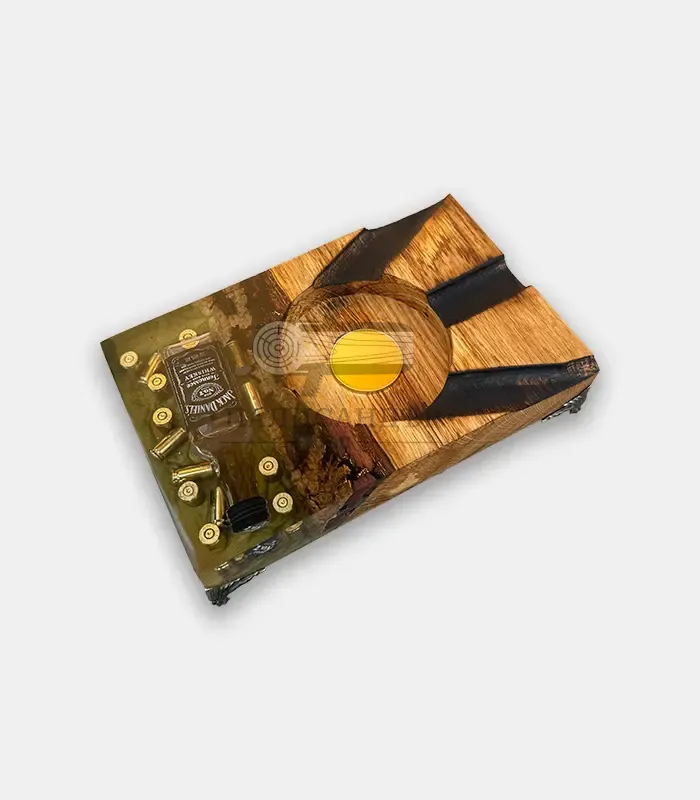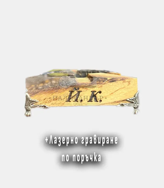 Изискан дървен пепелник за пури с епоксидна смола – ръчна изработка за ценители на класата и комфорта.