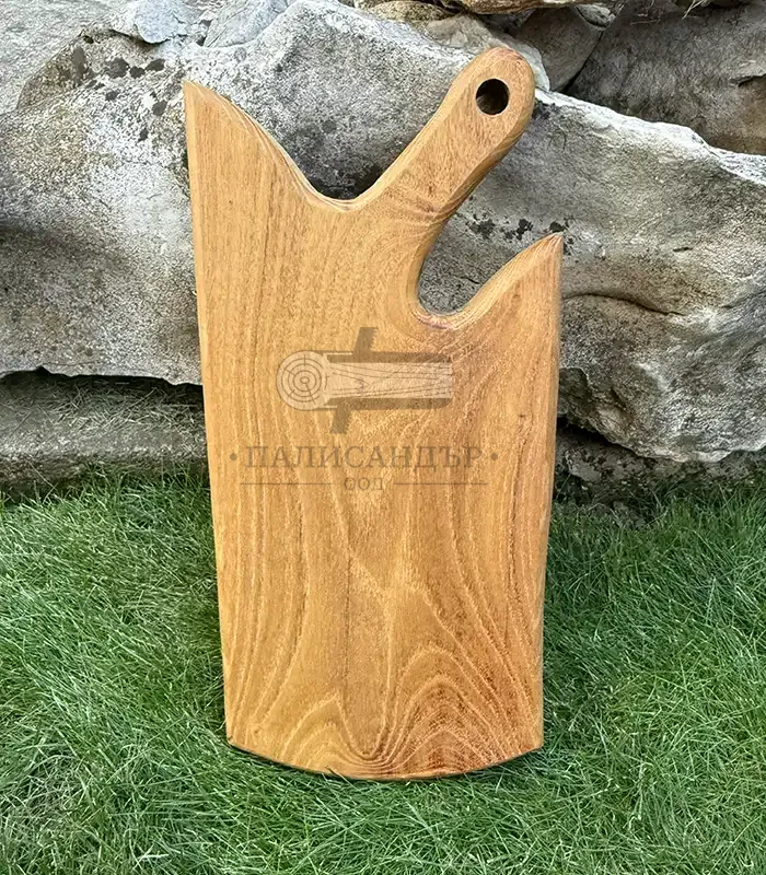 Акацията е изключително плътна и устойчива дървесина с наситена шарка, която съчетава естетика с висока функционалност. Благодарение на естествените си антисептични свойства, тя е идеален материал за изработка на дъски за рязане, сервиране и презентация.
