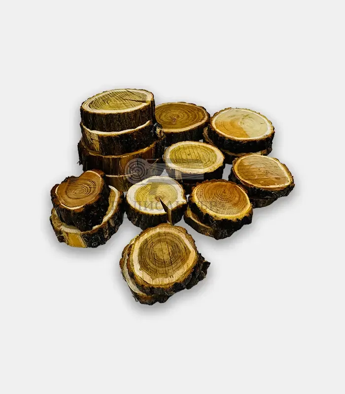 Продуктът се среща и като „дървени резени“, „декоративни шайби от дърво“, „шайби с кора“ или „естествени подложки от дърво“. В занаятчийските среди често се наричат и „дървени пънчета“ или „резени от акация“.