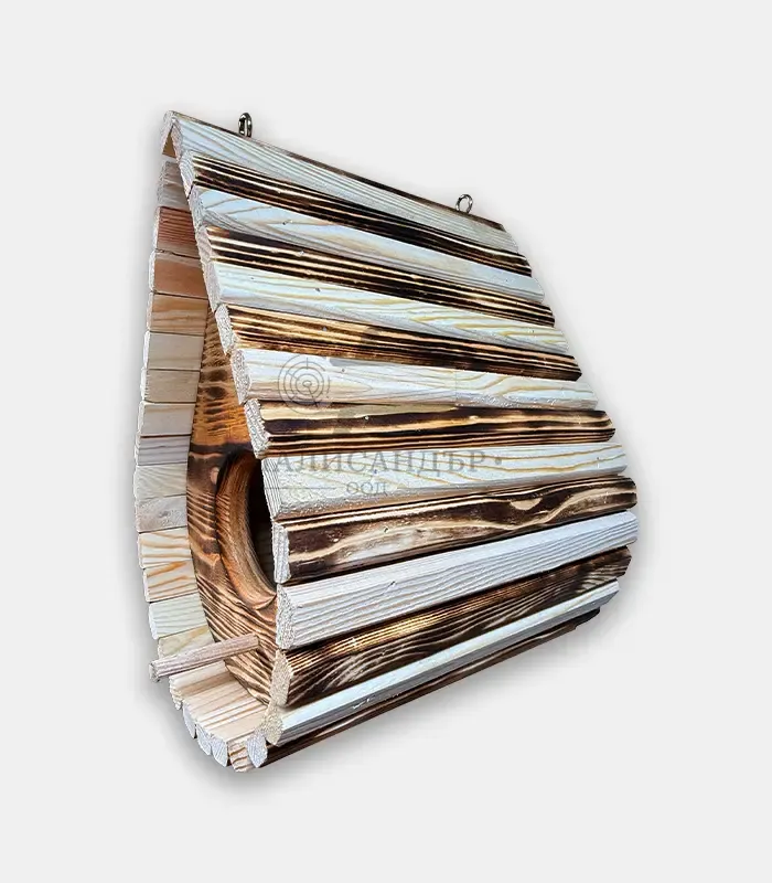 Известна още като дървена хранилка за птици, птиче гнездо от дърво или висяща къщичка за пойни птици, тази къщичка изпълнява всички изисквания за комфорт и сигурност, нужни на пернатите обитатели на градината. Подходяща е както за целогодишно използване, така и за сезонно поставяне през размножителния период на птиците.