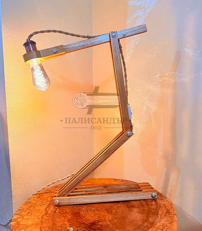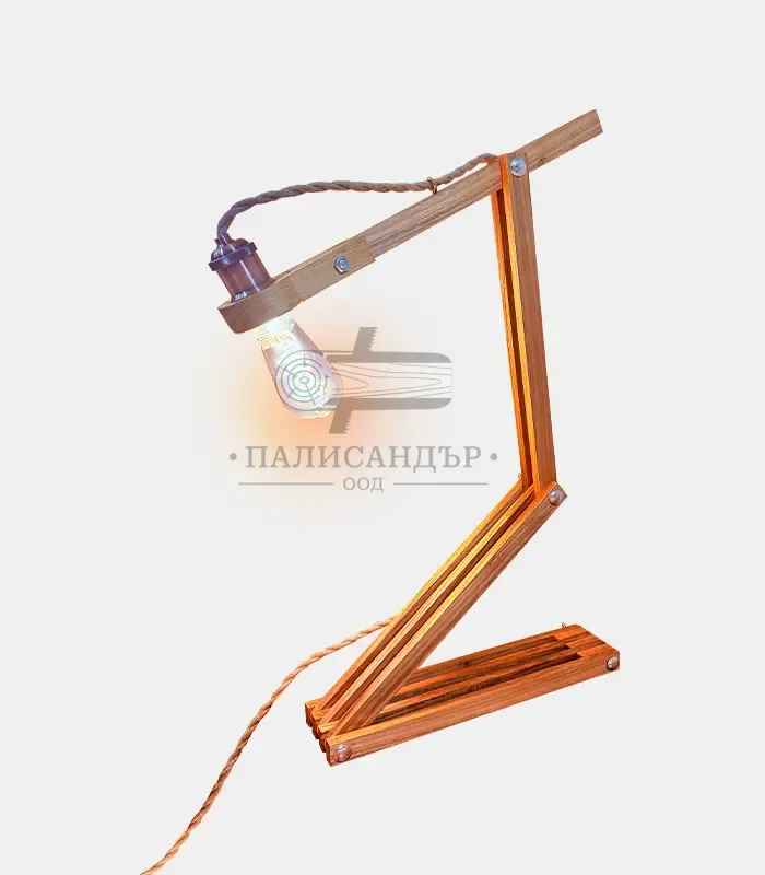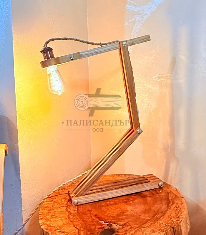 Zetto е дизайнерска сгъваема лампа от масивна акация с артистична Z-образна конструкция. Може да заема различни форми и позиции, като съчетава функционалност и арт визия. Обработена с ленено масло, карнауба и пчелен восък за естествена защита и топъл завършек. Крушката е включена в цената.