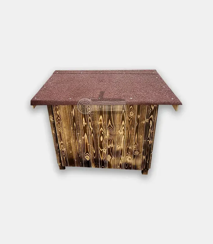 Популярна още като „дървена кучешка къщичка“, „дървена колибка за куче“, „външна кучешка къща“, „масивна къщичка за куче“.