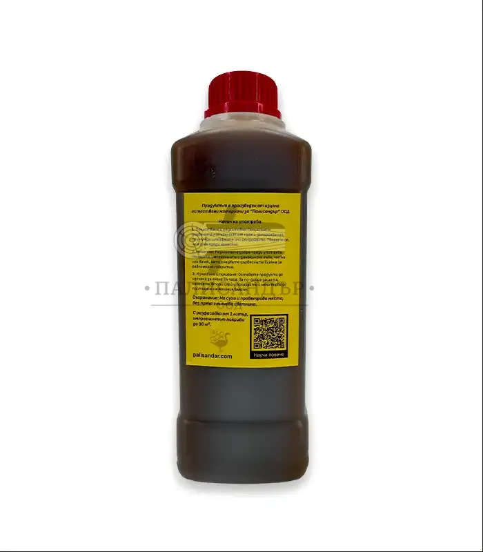 Премиум екстериорно масло за дърво Палисандър е висококачествено защитно покритие, разработено специално за външна дървесина, изложена на атмосферни влияния. Произведено по формула на Палисандър ООД, това масло прониква дълбоко в порите на материала, подхранва го и осигурява дълготрайна защита срещу влага, UV лъчи и напукване.