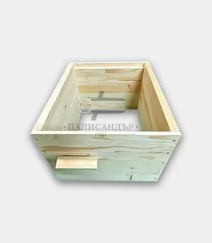 Плодникът за кошер Дадан-Блат 10 рамков от Палисандър ООД е основният корпус в най-популярната система за пчеларство в България и Европа. Този елемент служи като основен дом за пчелното семейство – тук се развиват майката, пилото и се съхранява голяма част от меда. Изработен от качествена суха иглолистна дървесина – смърч или бор, плодникът гарантира здравина, добра изолация и устойчивост на атмосферни условия.
