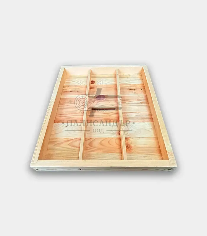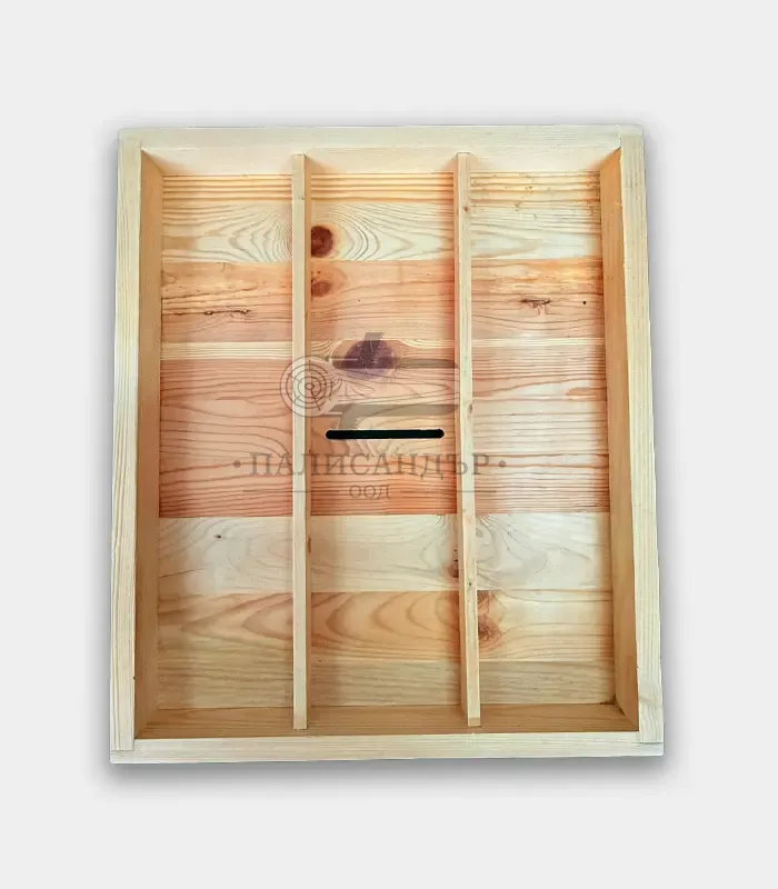 Хранилната табла с три прегради – слепена №3 от Палисандър ООД е създадена с акцент върху дълготрайност, устойчивост и прецизност. В нея се комбинират класическа форма с модерен подход при изработката – отделните елементи са слепени за по-голяма стабилност, устойчивост на влага и минимизиране на течове. Продуктът е предназначен за целогодишно подхранване на пчелни семейства в кошери по стандарт Дадан-Блат.